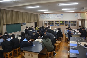 全体会のあと、各委員会では3年生から2年生へ、活動内容や引き継ぎ事項の説明が行われました。