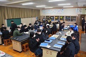 生徒総会で緊張の見られた新役員の皆さんも、今回の引継会では笑顔が見られ、先輩の話に一生懸命耳を傾けていました。