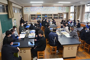 生徒総会で緊張の見られた新役員の皆さんも、今回の引継会では笑顔が見られ、先輩の話に一生懸命耳を傾けていました。