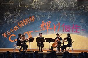 シエスタ弦楽四重奏団の皆様にご来校いただき、1時間のコンサートを全校で鑑賞しました。