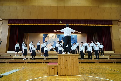 閉祭式では、3役生徒が各学年生徒に緑樹祭を振り返るインタビューを行い、動画で2日間を振り返りました。